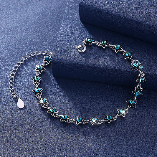Blue Star Crystal and Crescent Charms In Silver Necklace