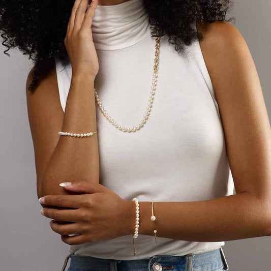 Gold Bar Bead Bracelet in 14 Karat Gold