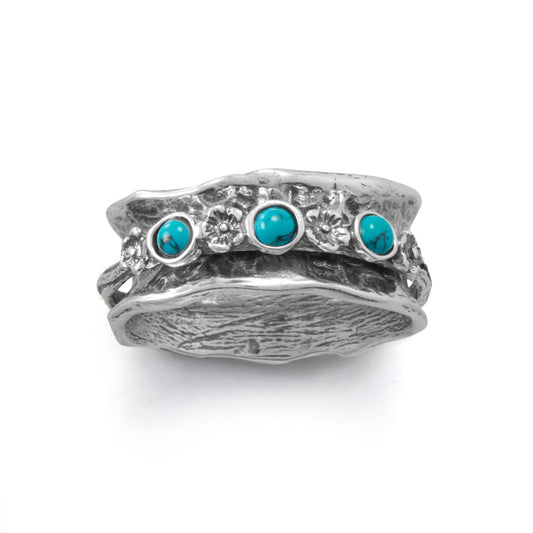 Spin Silver Flower Ring with Turquoise Stones
